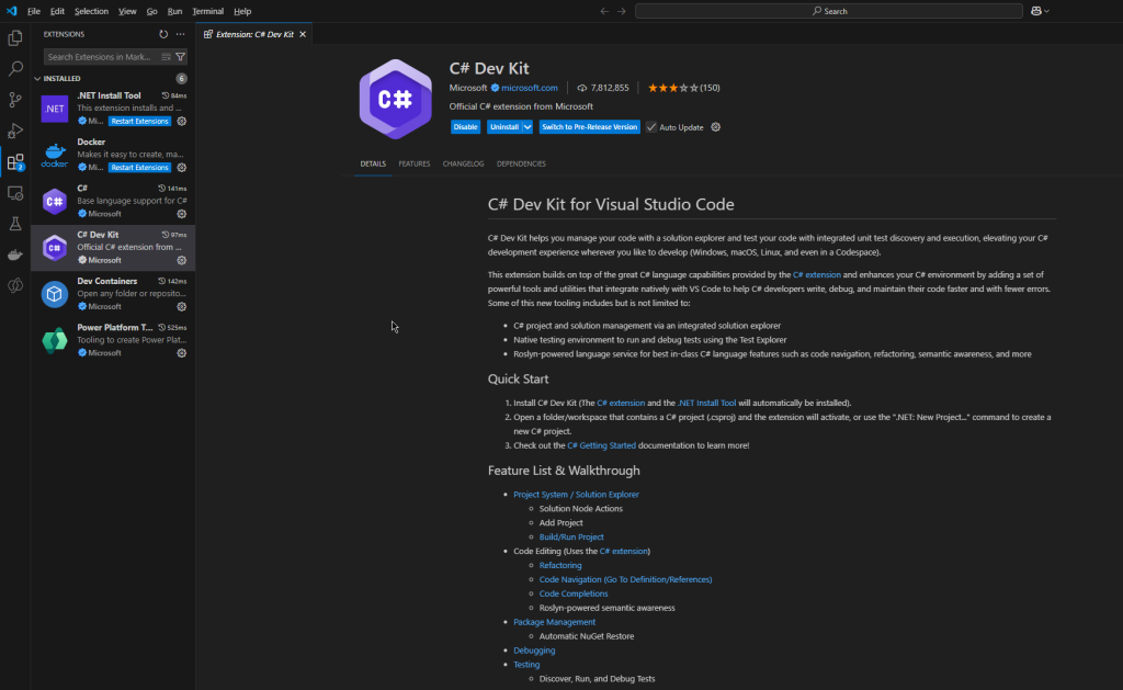 After you install Visual Studio Code and the latest .NET, you should install the C# Dev Kit for VS Code to make your life easier. It’s just way more convenient. So, let’s first install that as well.